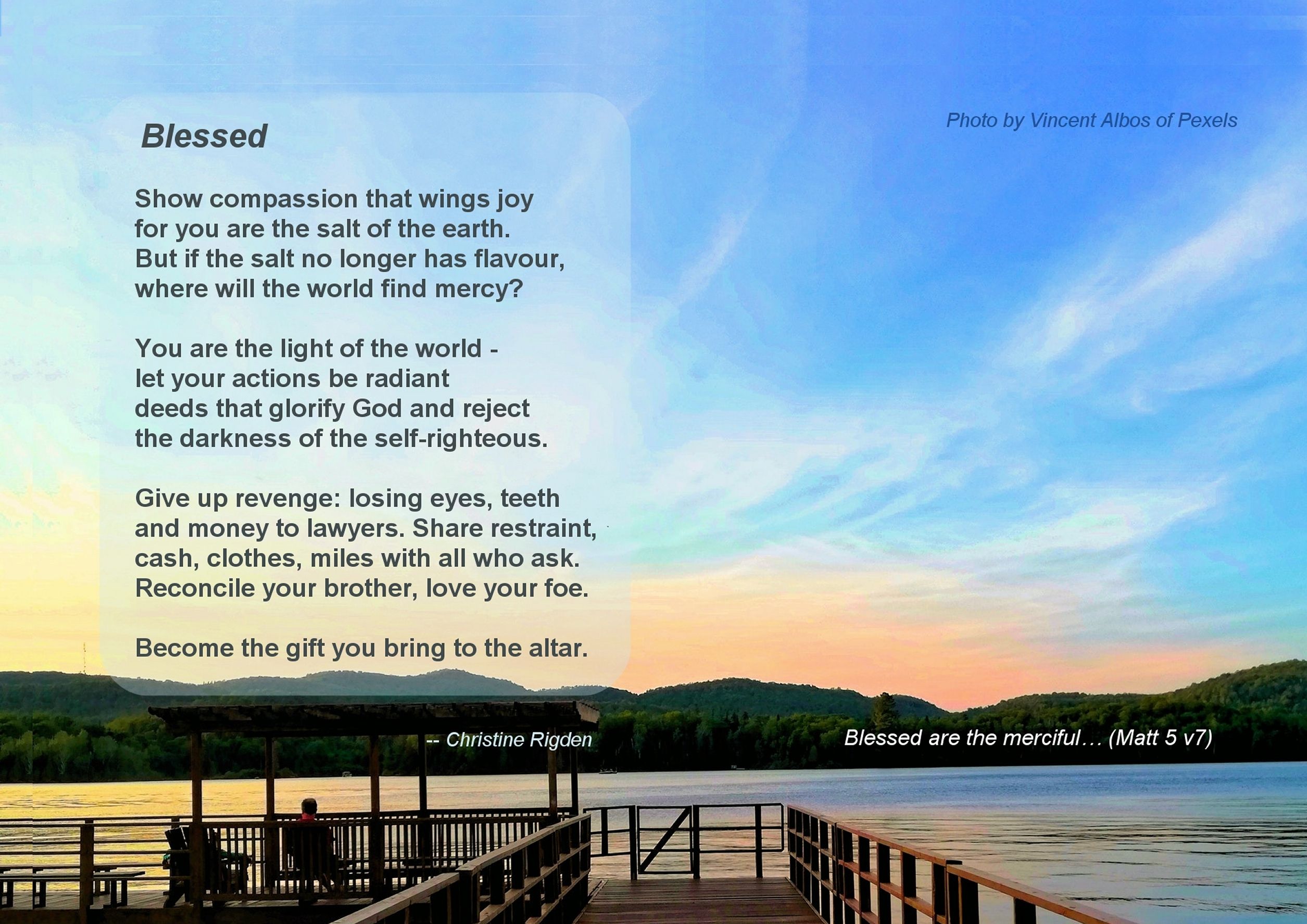 Poem Pics Gallery I enjoy putting some of my poems with pictures. Here are a few, no doubt more will be added from time to time. I will credit other people’s photos where I can, but some I bought years ago and can’t find the information. Enjoy your browse!